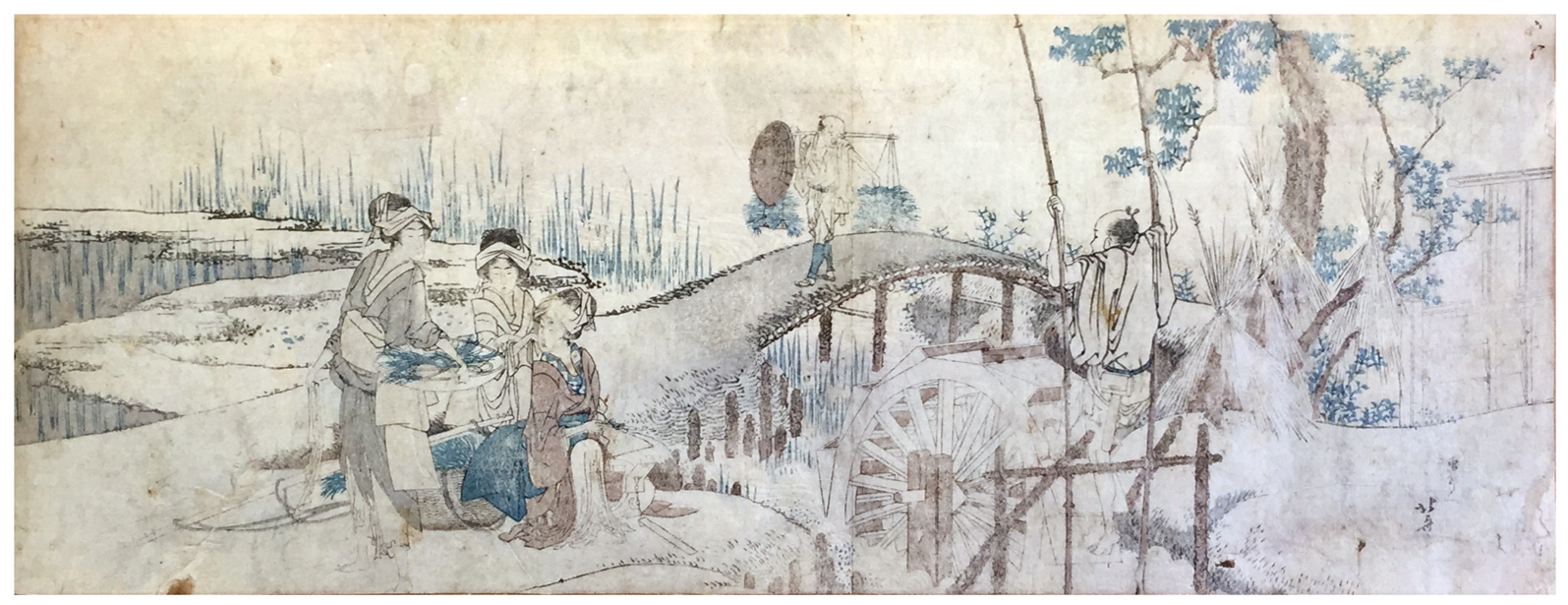 Notes: Very rare long surimono, signed Gakyojin Hokusai ga.