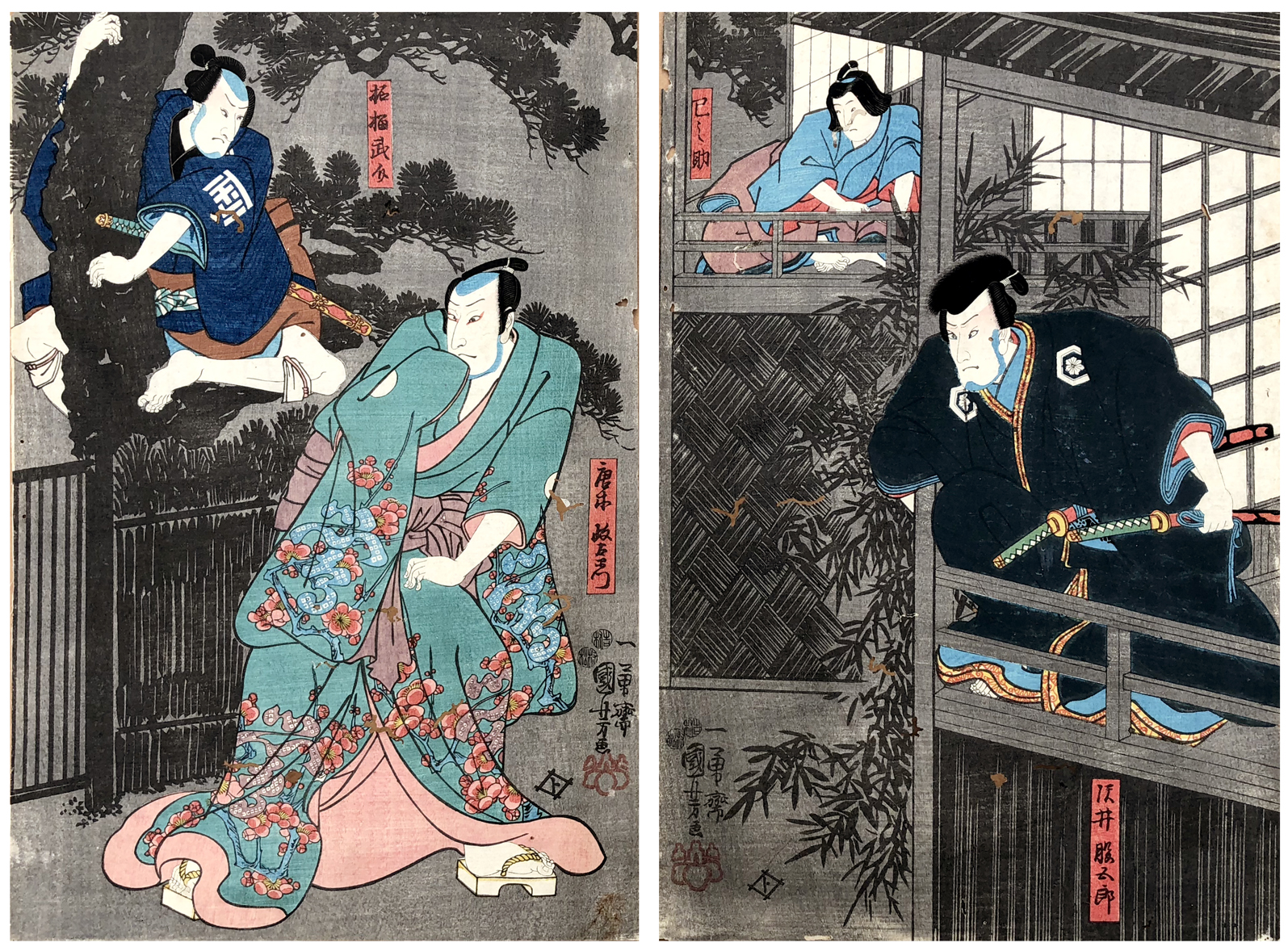 Woodblock Print Title: Actors in Kabuki Play.