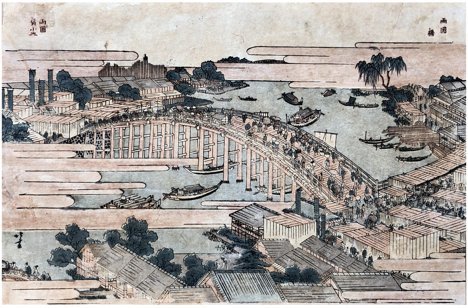 Woodblock Print Title: Afternoon at Ryogoku Bridge, from the series Newly Published Perspective Pictures (Shinpan uki-e)