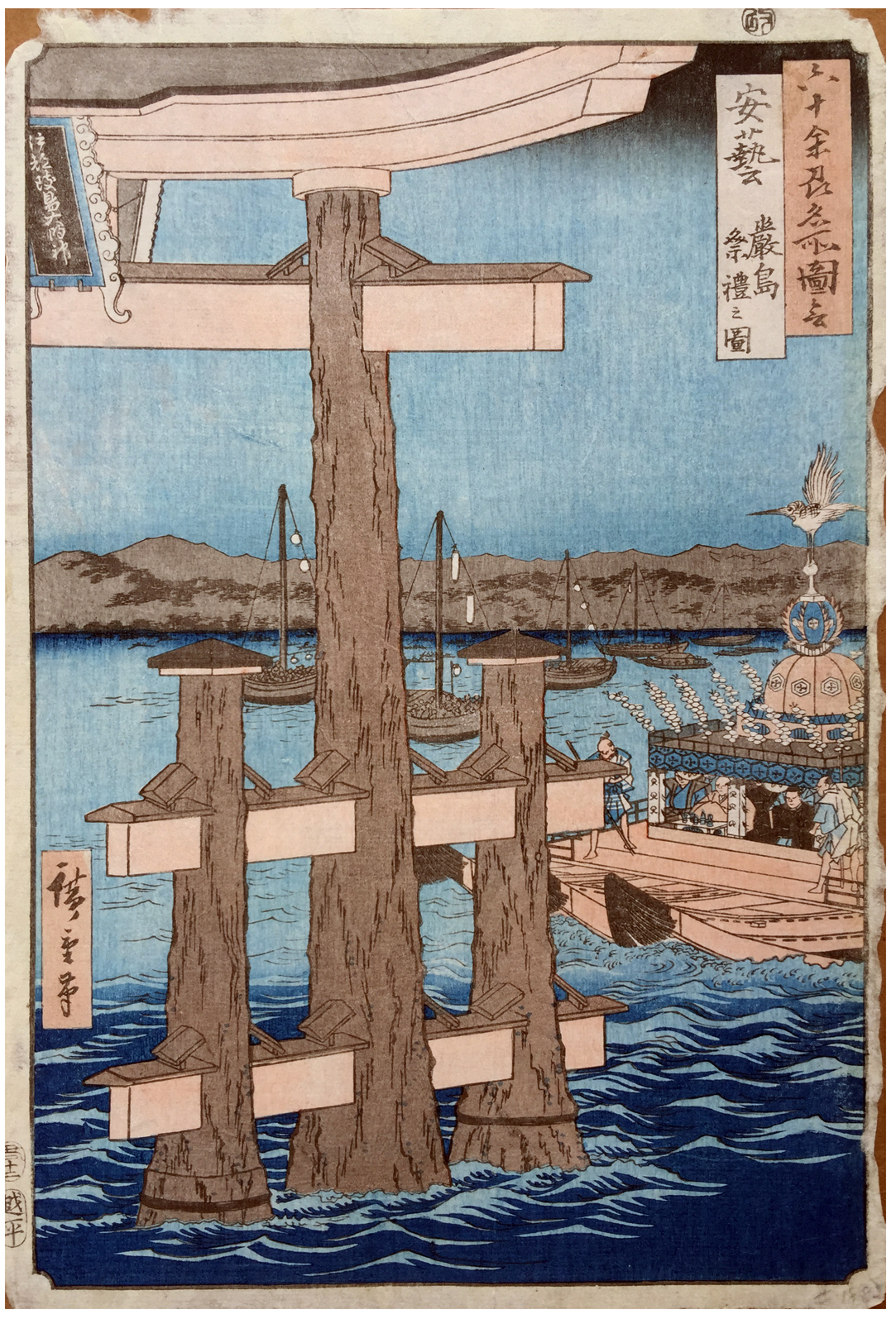 Woodblock Prints Title: Akai Province: Itsukushima, Depiction of a Festival (Aki, Itsukushima, Sairei no zu), from the series Famous Places in the Sixty-odd Provinces [of Japan] ([Dai Nihon] Rokujûyoshû meisho zue)