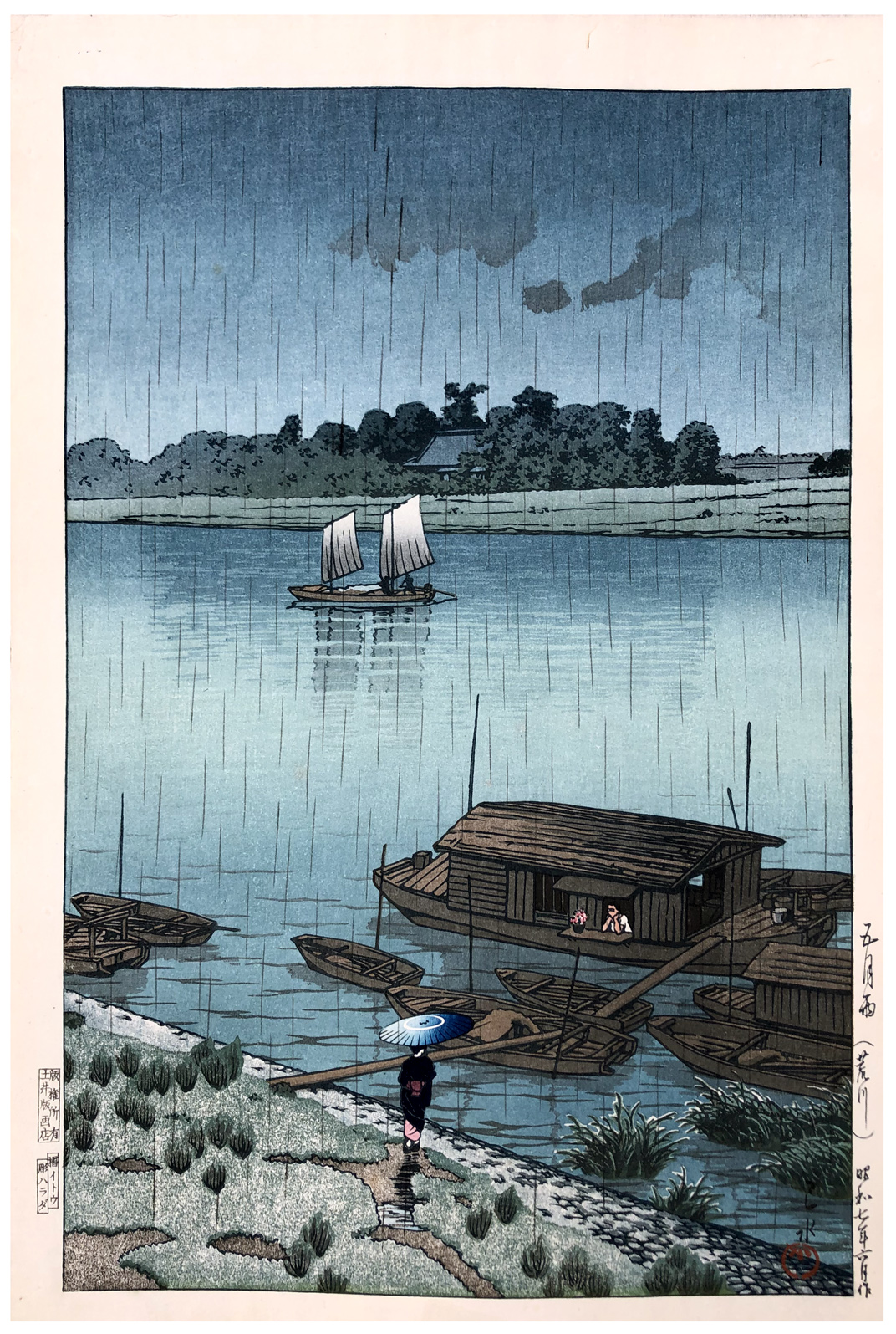 Woodblock Print Title: Arakawa River in May Rain