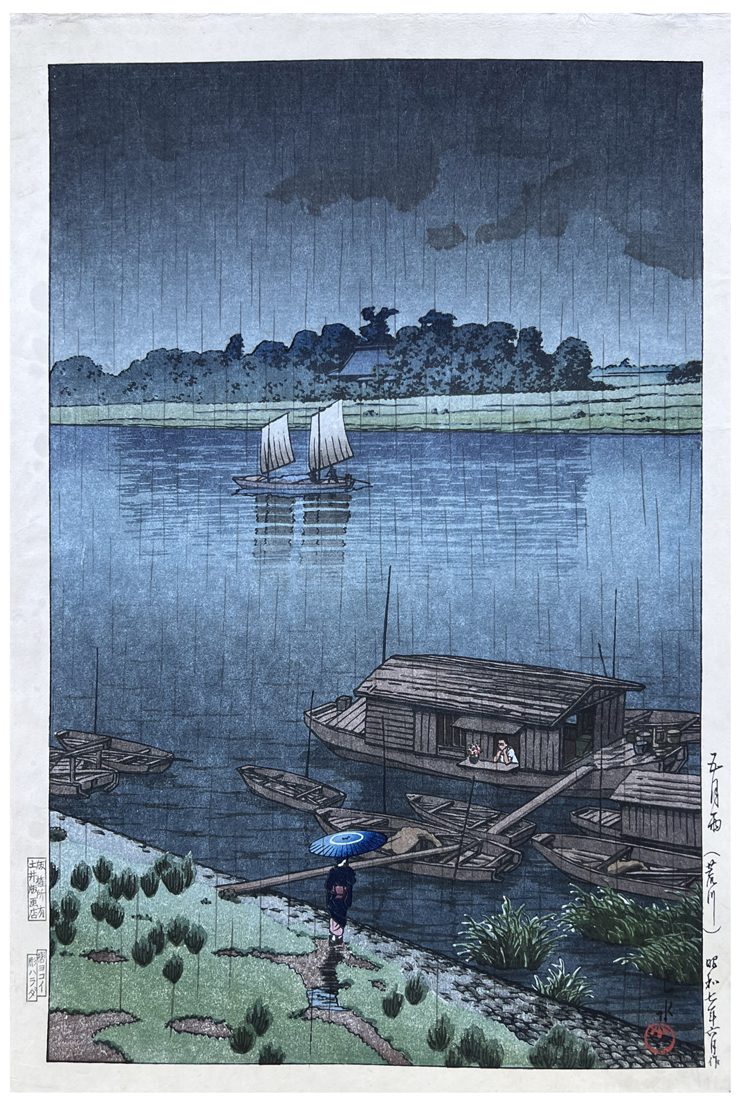 Woodblock Print Title: Arakawa River in May Rain