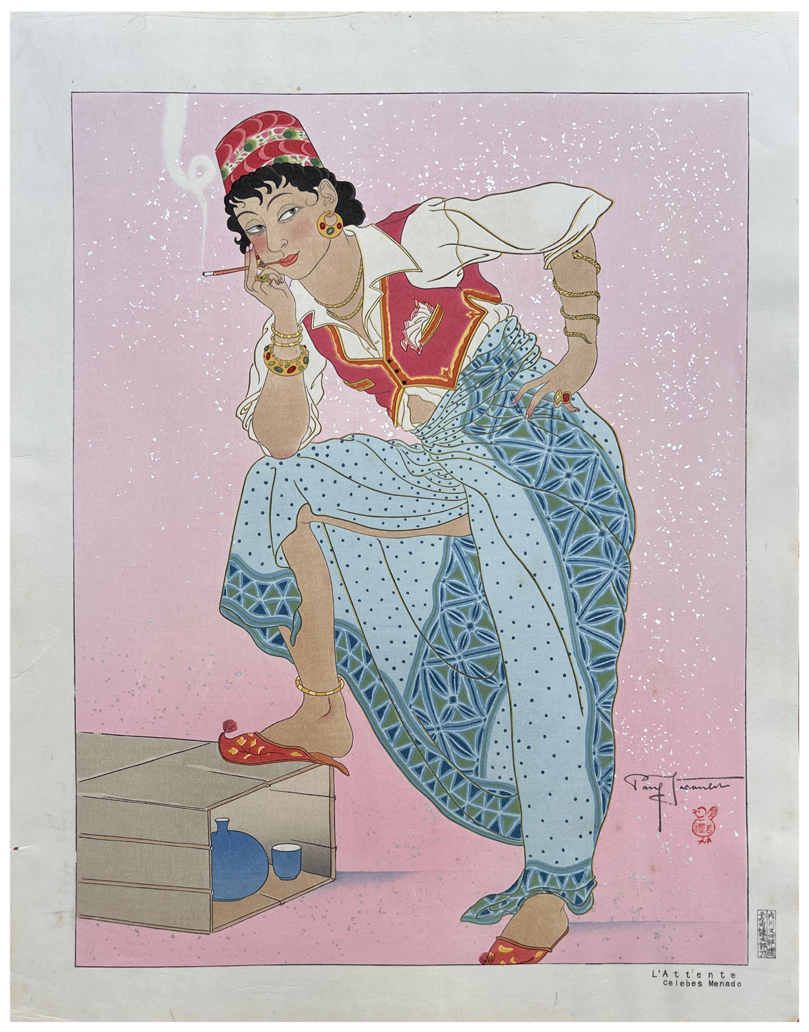 Woodblock Print Title: L'attente Celebes Menado