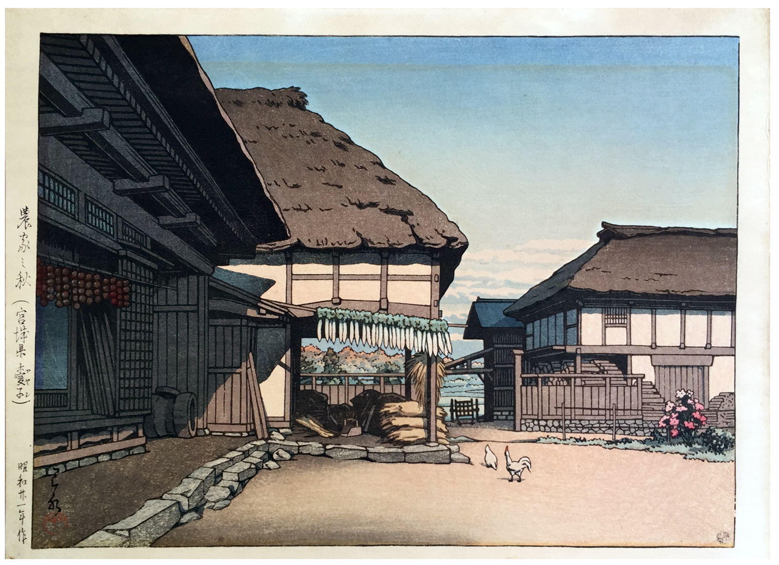 Woodblock Prints Title: Autumn at a Farmhouse in Ayashi, Miyagi Prefecture (Nôka no aki [Miyagi-ken Ayashi])