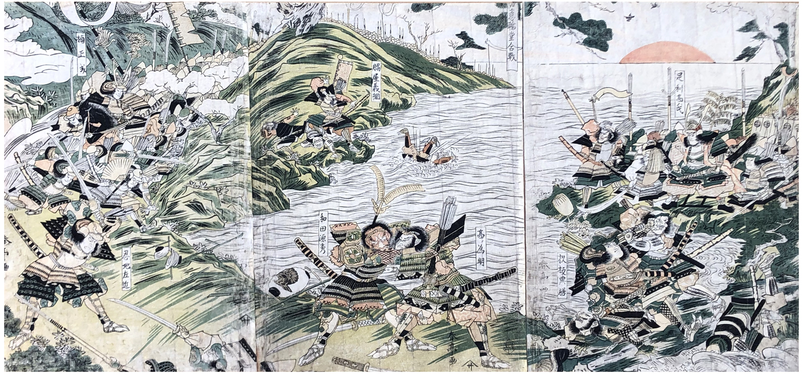 Woodblock Print Title: Battle at the Nyoirin Hall in Washu
