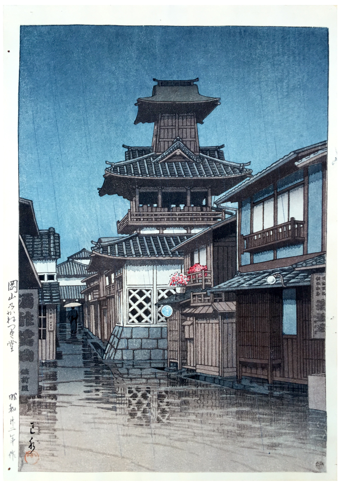 Bell Tower at Okayama by Kawase Hasui 1st Ed.