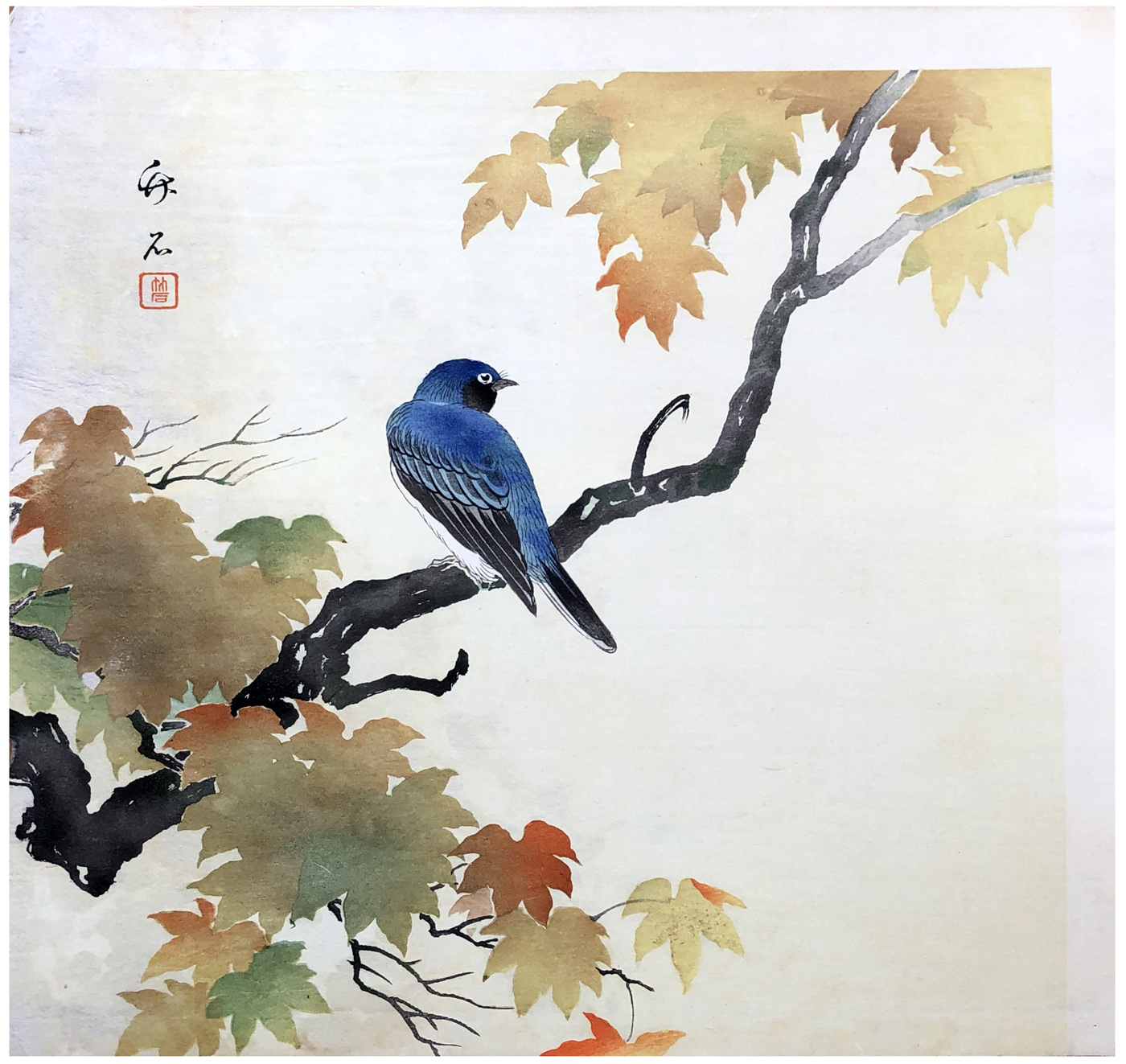 Woodblock Print Title: Blue Bird on a Branch Nagamachi Chikuseki