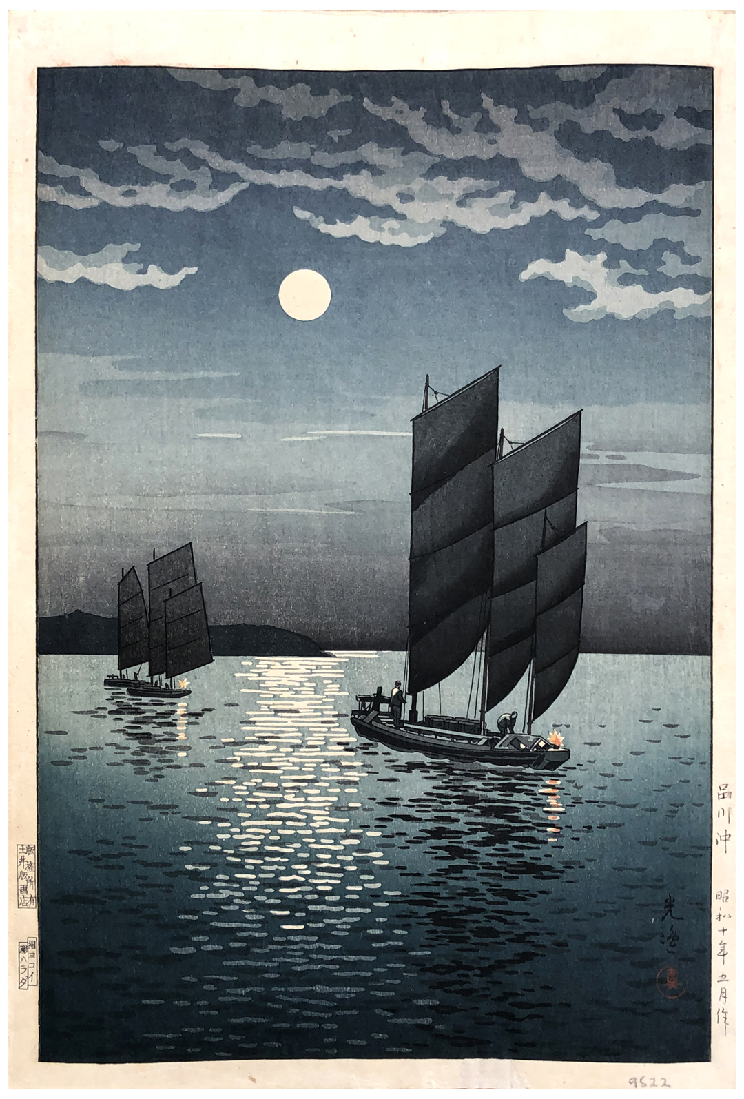 Boats at Shinagawa by Night by Tsuchiya Koitsu