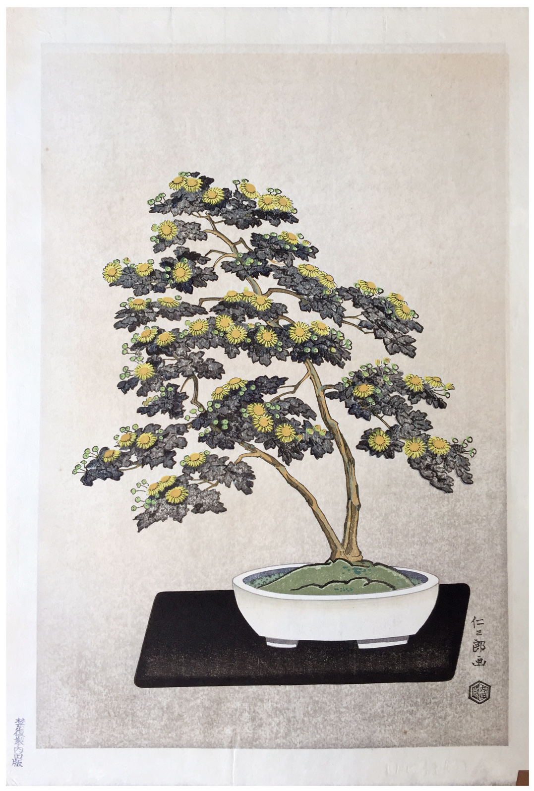 Woodblock Prints Title: Bonsai Chrysanthemum
