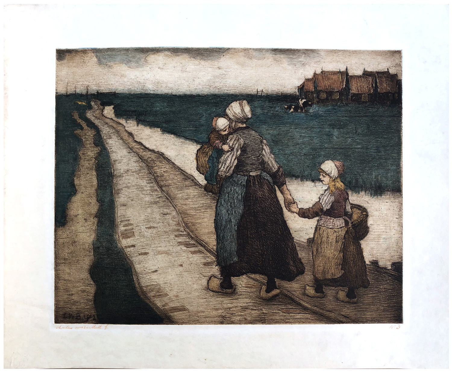 Woodblock Print Title: By the Dike Side, Marken, Holland