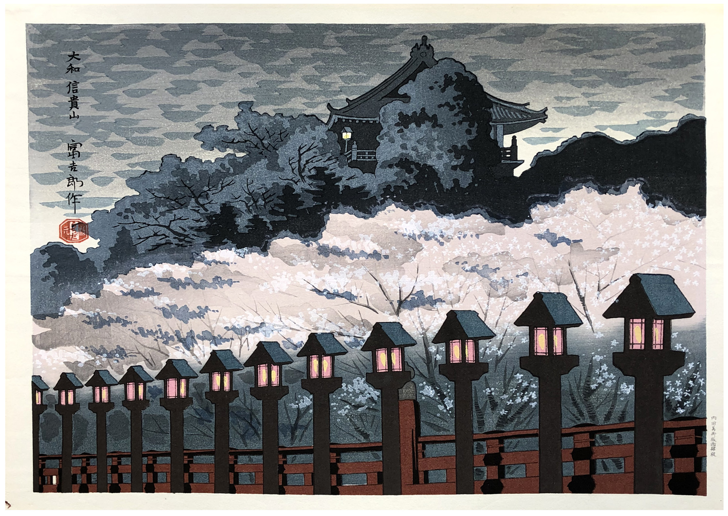 Woodblock Print Title: Cherry Blossom Night at Shigisan Temple from the series Famous Historic Places and Holy Places