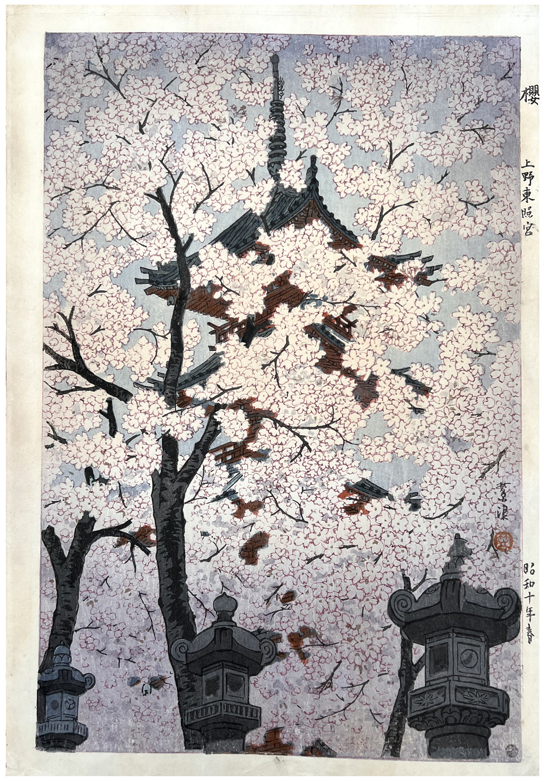 Woodblock Print Title: Cherry Blossoms at the Tôshôgû Shrine in Ueno