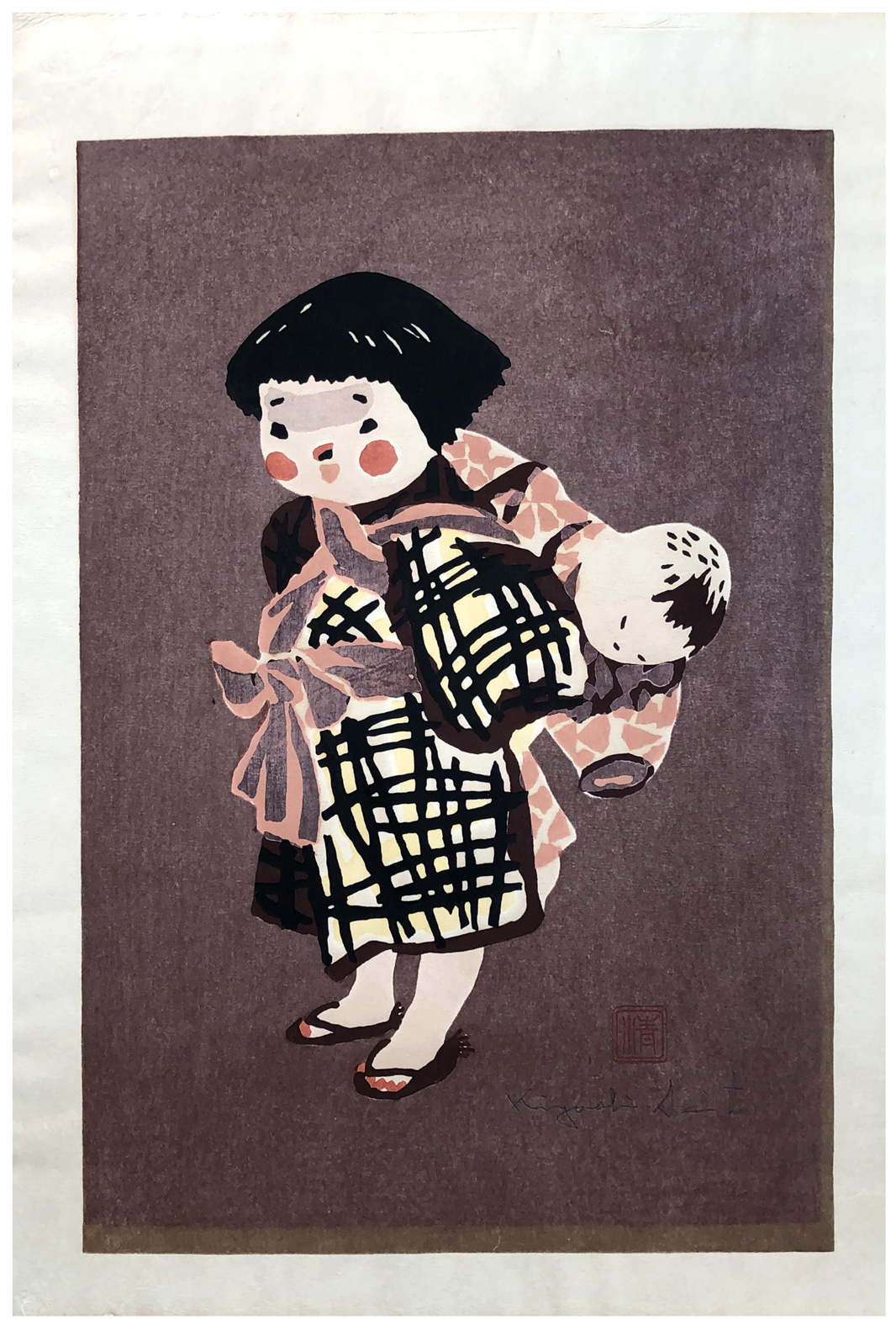 Woodblock Print Title: Child Carrying a Baby on her Back