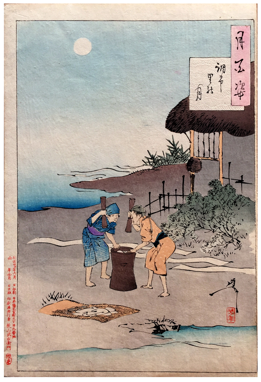 Woodblock Prints Title: One Hundred Aspects of the Moon # 96 Chofu village moon (Chofu sato no tsuki)