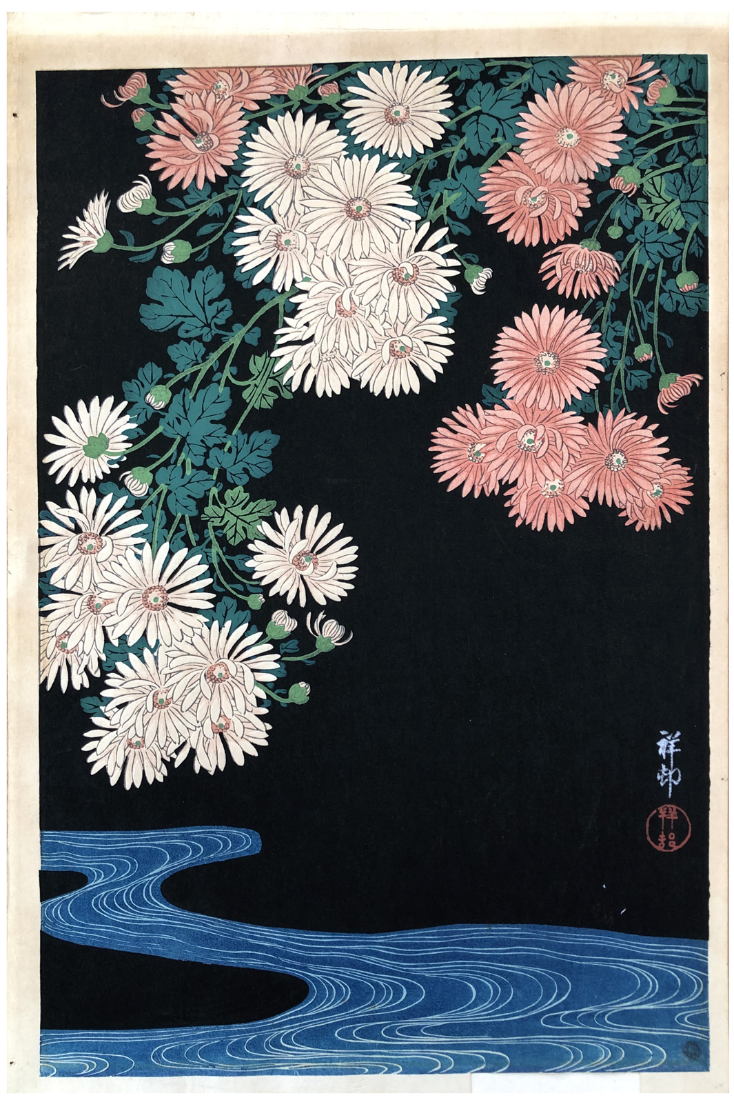 Woodblock Print Title: Chrysanthemum and Running Water