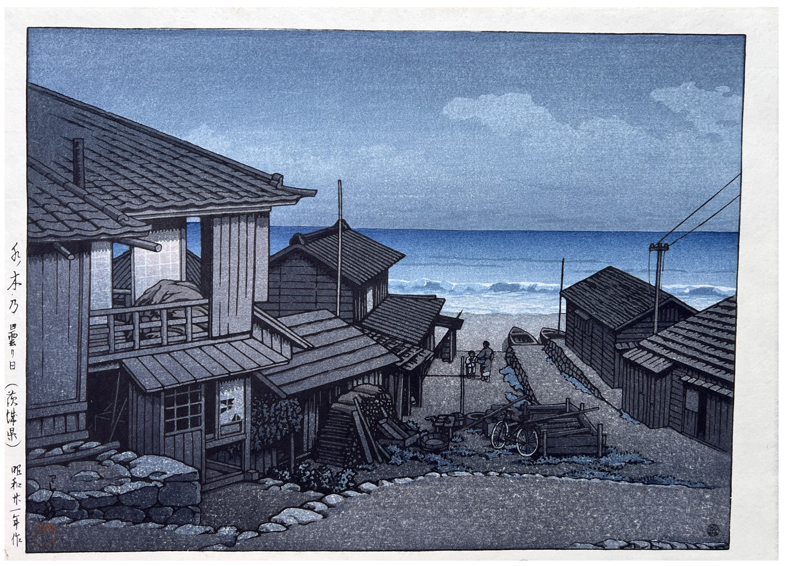 Woodblock Print Title: Cloudy Day at Mizuki in Ibaraki Prefecture (Mizuki no kumoribi [Ibaraki-ken])