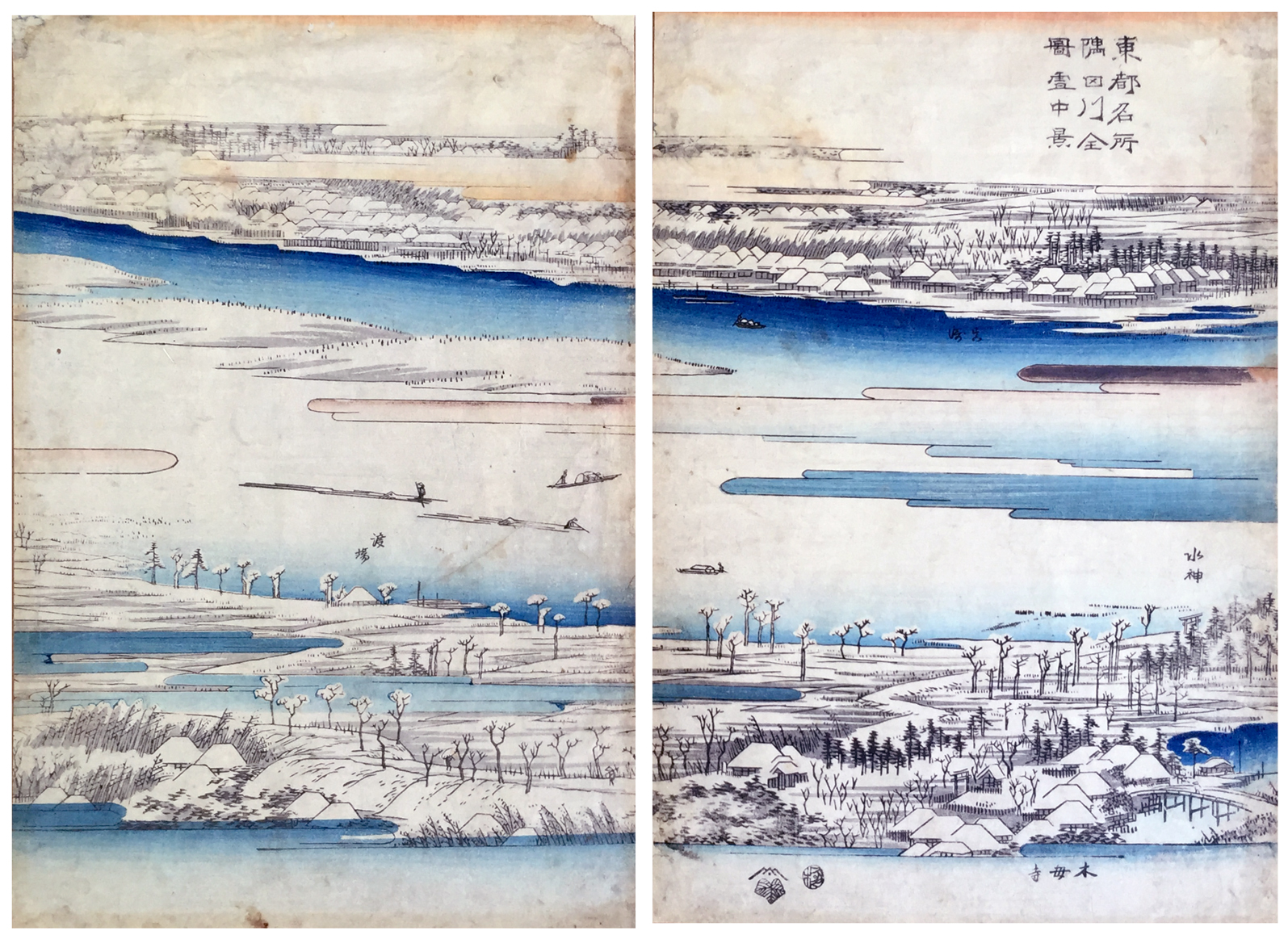 Woodblock Prints Title: Complete View of the Sumida River: Snow Scene (Sumidagawa zenzu, setchû kei), from the series Famous Places in the Eastern Capital (Tôto meisho)