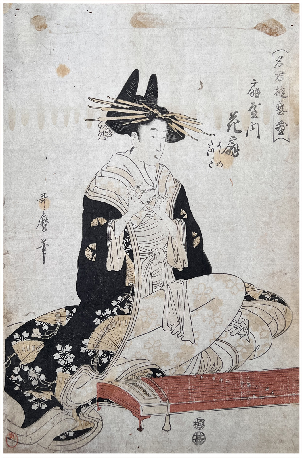 Woodblock Print Title: Courtesan Playing Koto from the series Meikun gakuya sugata