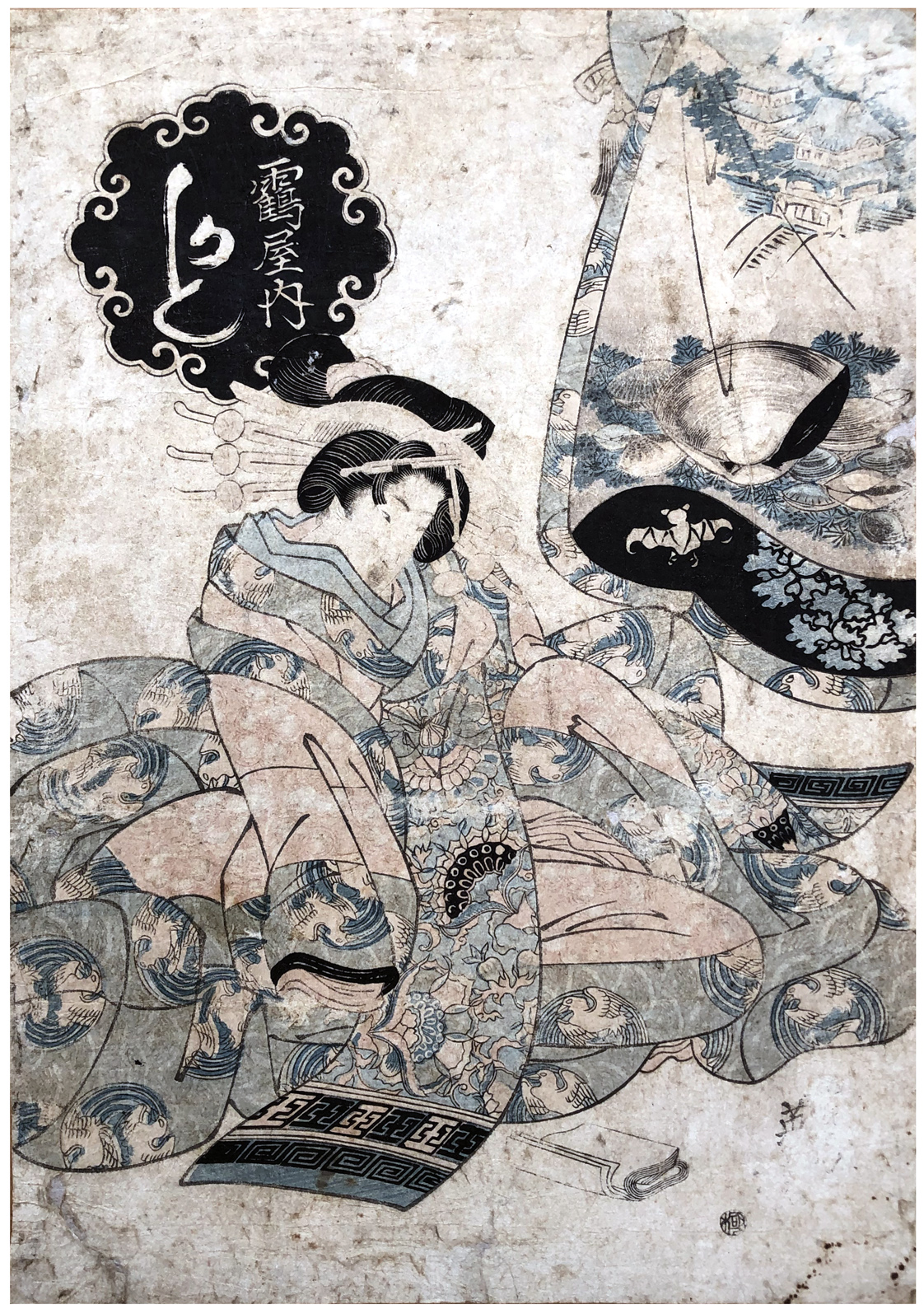 Woodblock Print Title: Courtesan Kashiku from the Tsuru House