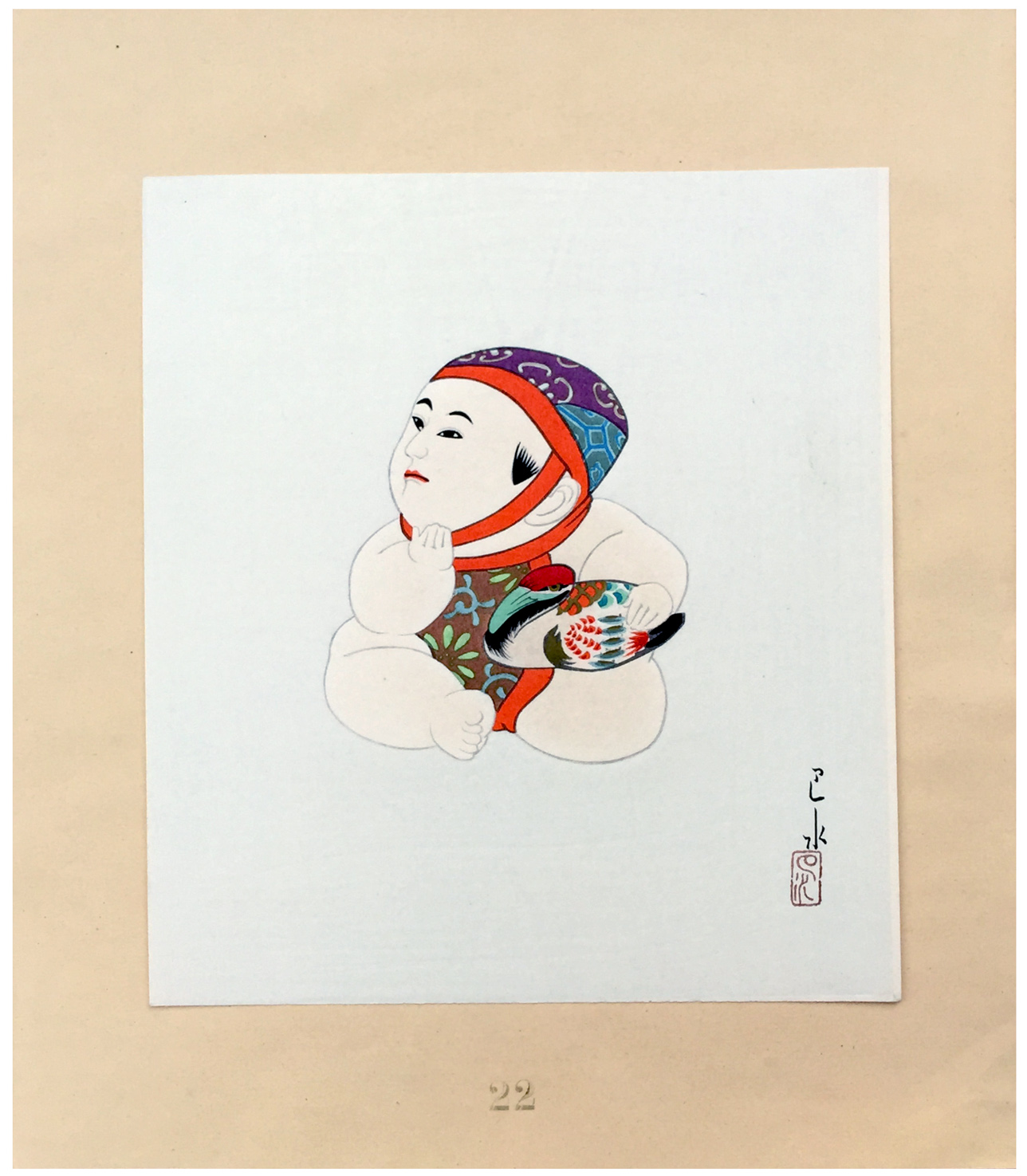 Notes:From the series of 24 designs of doll prints "Gosho Ningyo" which were printed by Kato Junji and published from Meiji Shobo. The original publisher's inventory number is "22".