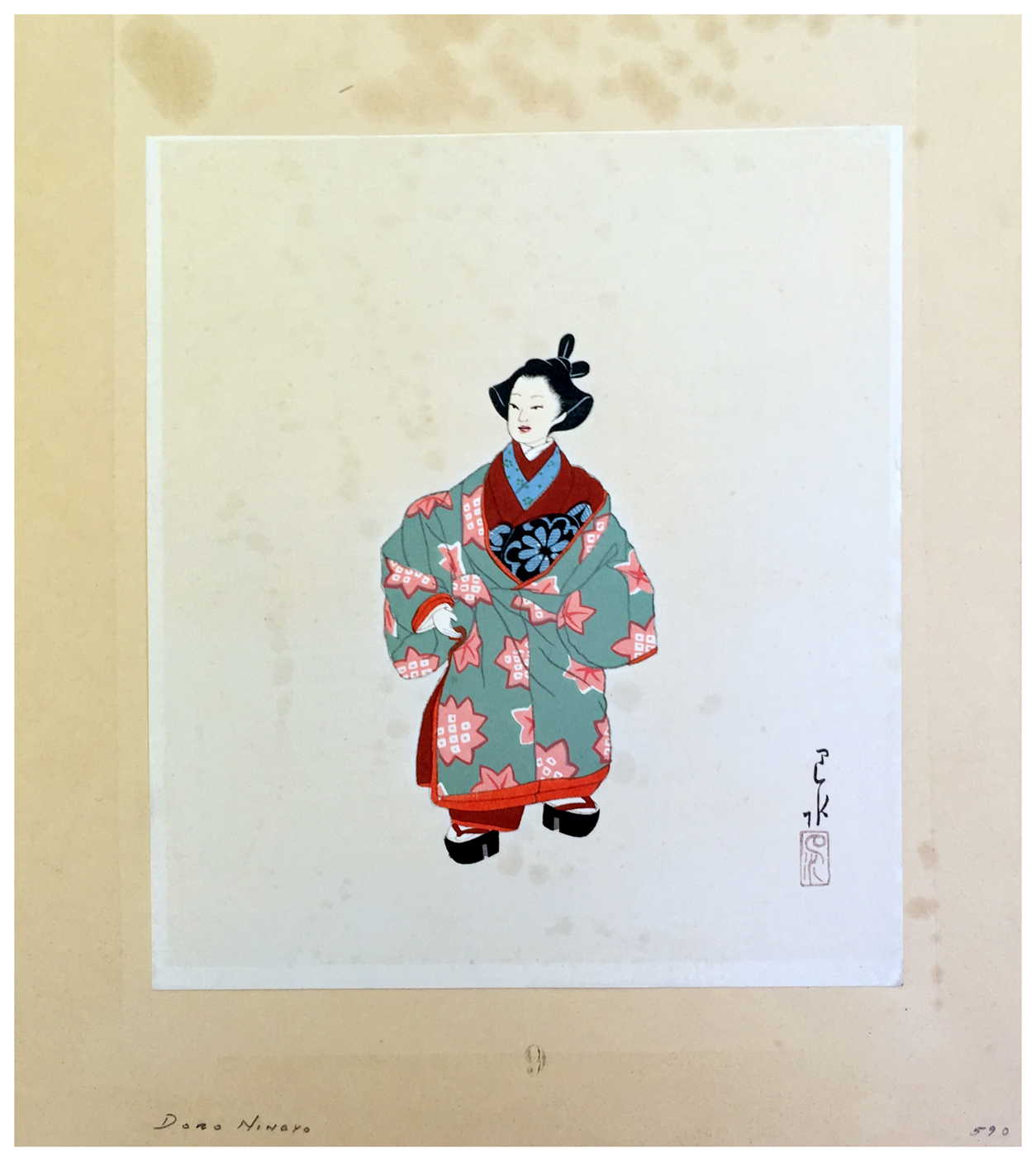 Notes: From the series of 24 designs of doll prints "Gosho Ningyo" which were printed by Kato Junji and published from Meiji Shobo. The original publisher's inventory number is "9".