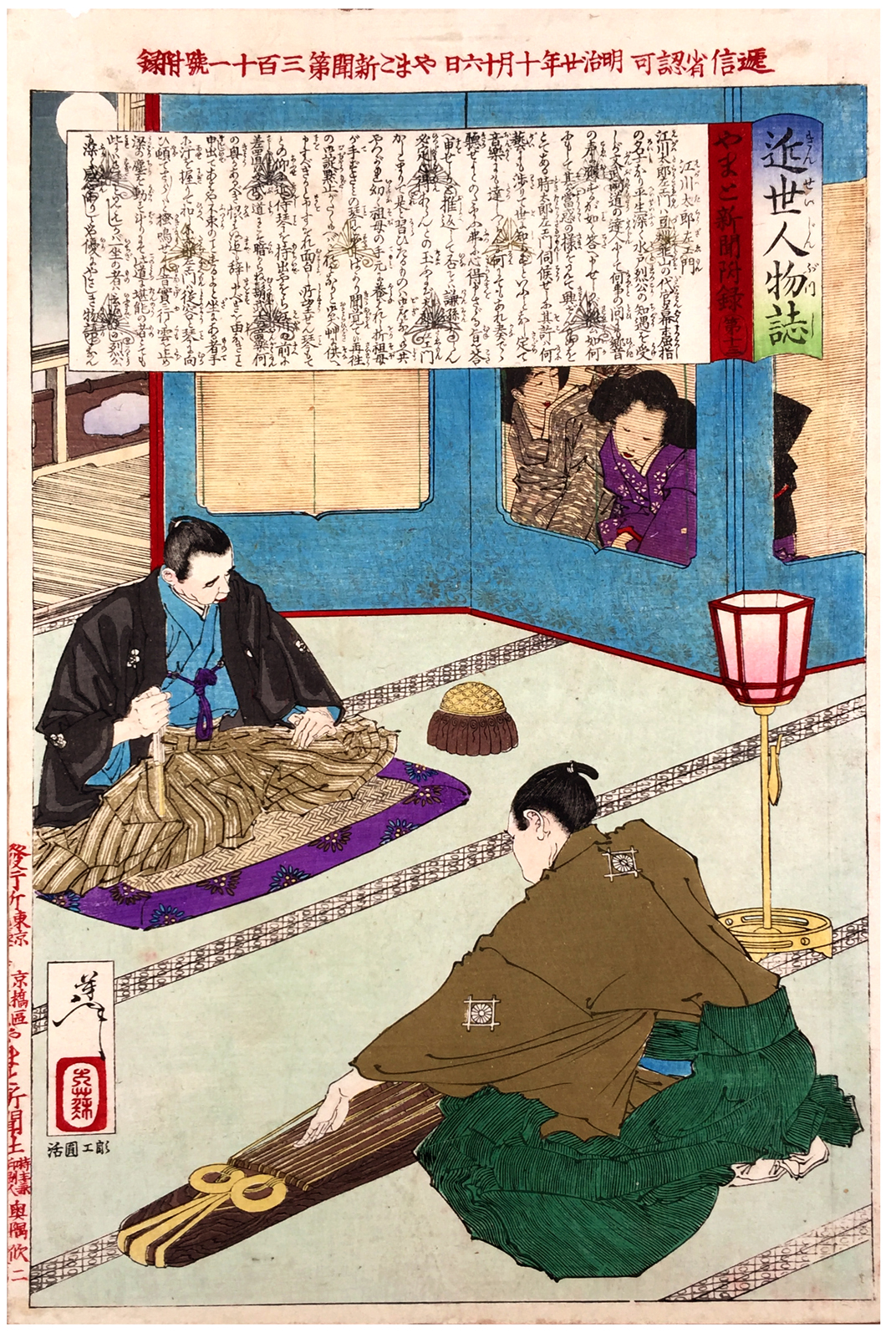 Woodblock Prints Title: Egawa Tarozaemon Playing the Koto from the series Personalities of Recent Times.