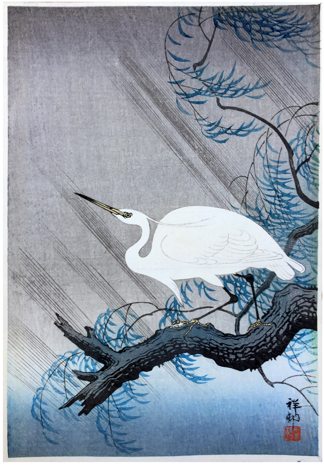 Woodblock Prints Title: Egret on a Bough of a Willow Tree