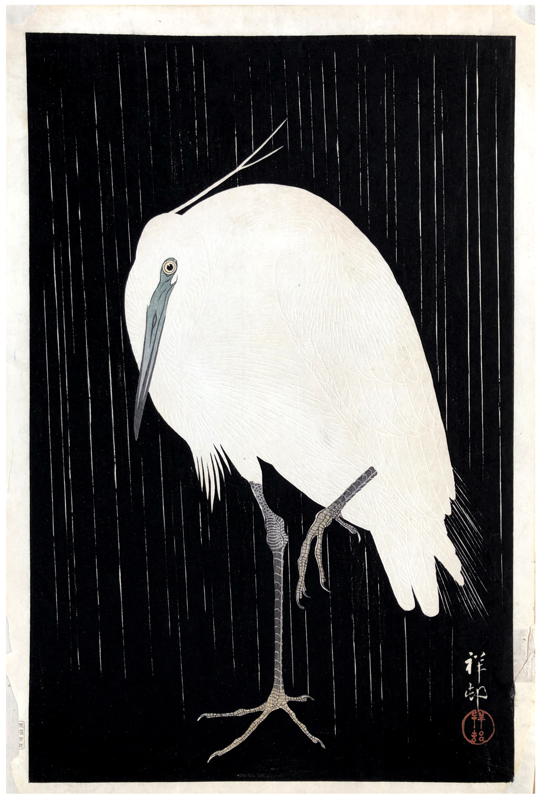 Egret on Rainy Night by Ohara Koson 1st Ed.