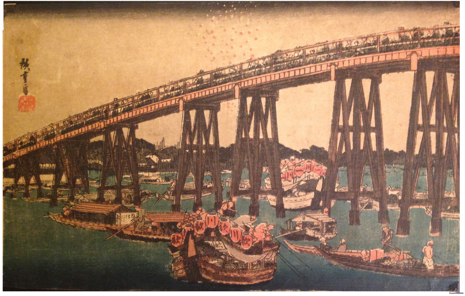 Woodblock Prints Title: Enjoying the Evening Cool at Ryogoku Bridge from the series Famous Places in Edo (Kôto meisho)