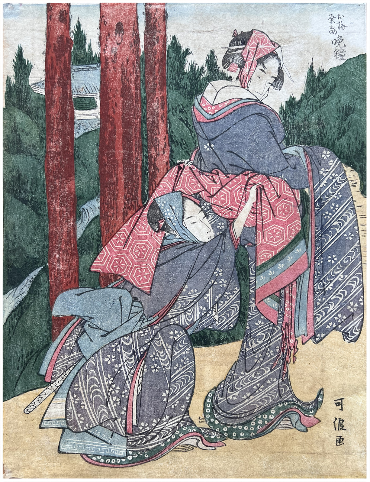 Woodblock Print Title: Evening Bell for Oume and Kumenosuke