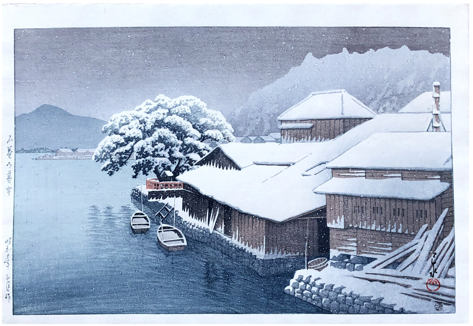 Notes: Bears a 6 mm seal, consistent with prints made between 1946 until 1957. Another great snow scene design by Kawase Hasui.