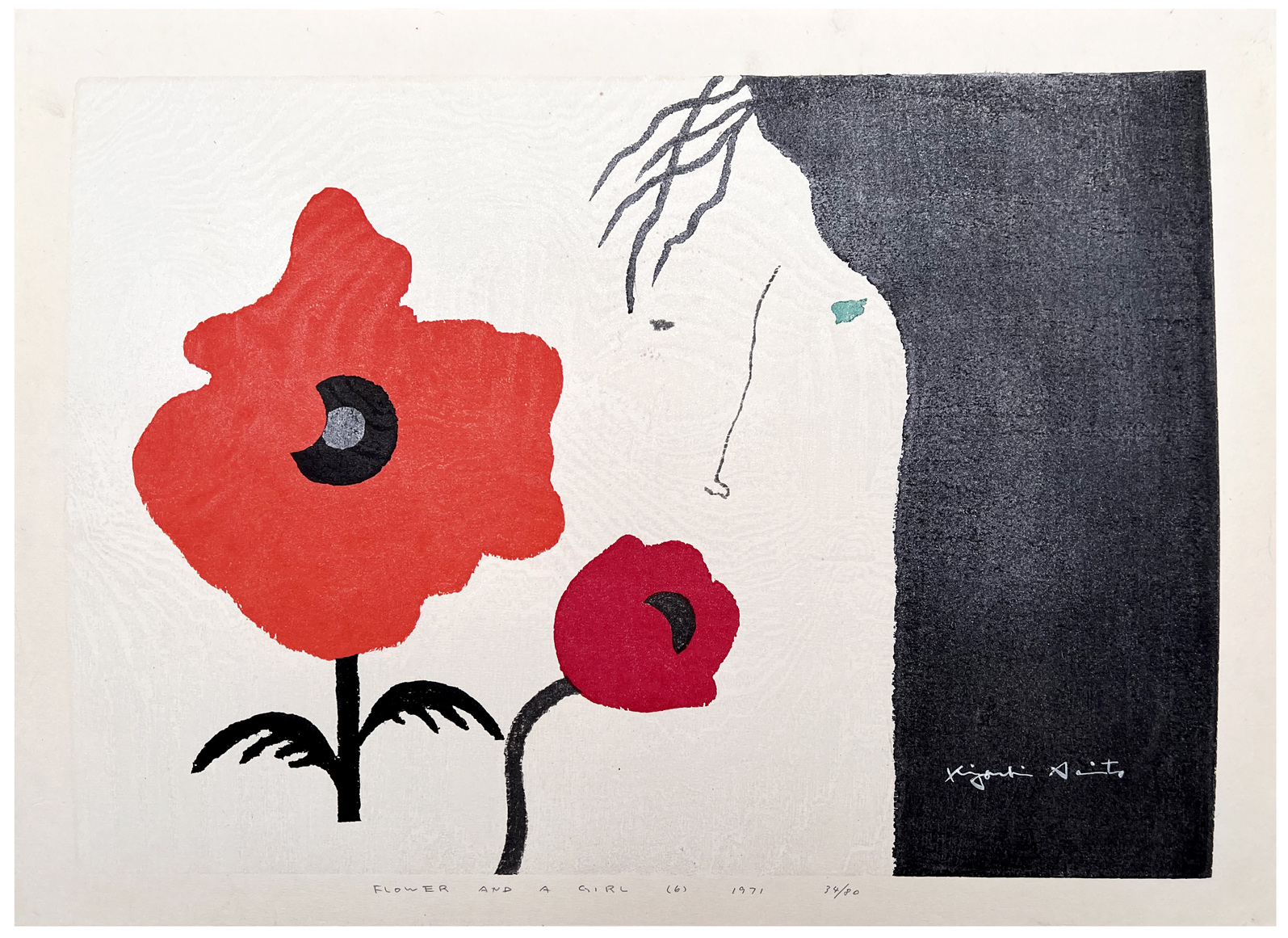 Woodblock Print Title: Flower and a Girl (6