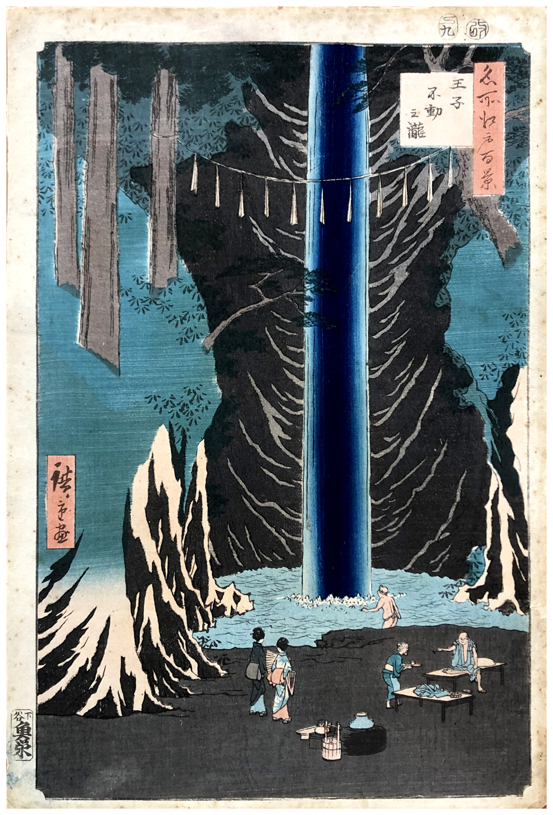 Woodblock Print Title: Fudo Falls, Oji (Oji Fudo no taki), from the series One Hundred Famous Views of Edo (Meisho Edo hyakkei)