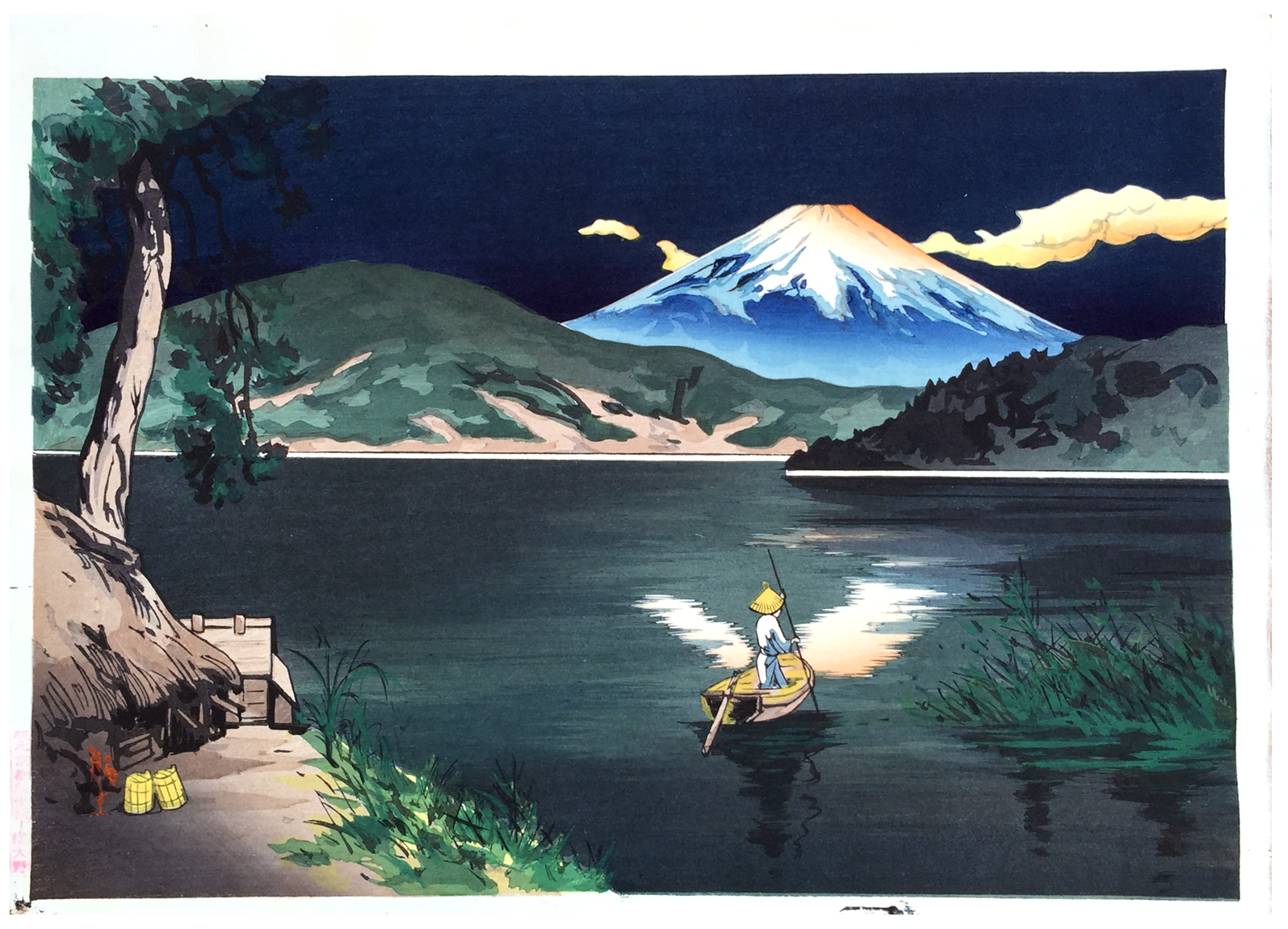 Woodblock Prints Title: Fuji from Lake Ashi in twilight