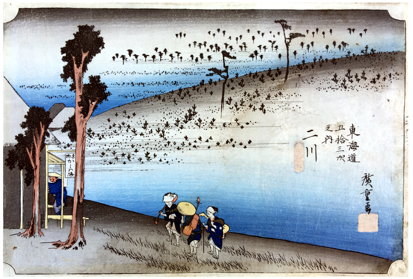 Woodblock Prints Title: Futakawa: Monkey Plateau (Futakawa, Sarugababa), from the series Fifty-three Stations of the T�kaid� Road (T�kaid� goj�san tsugi no uchi), also known as the First T�kaid� or Great T�kaid�