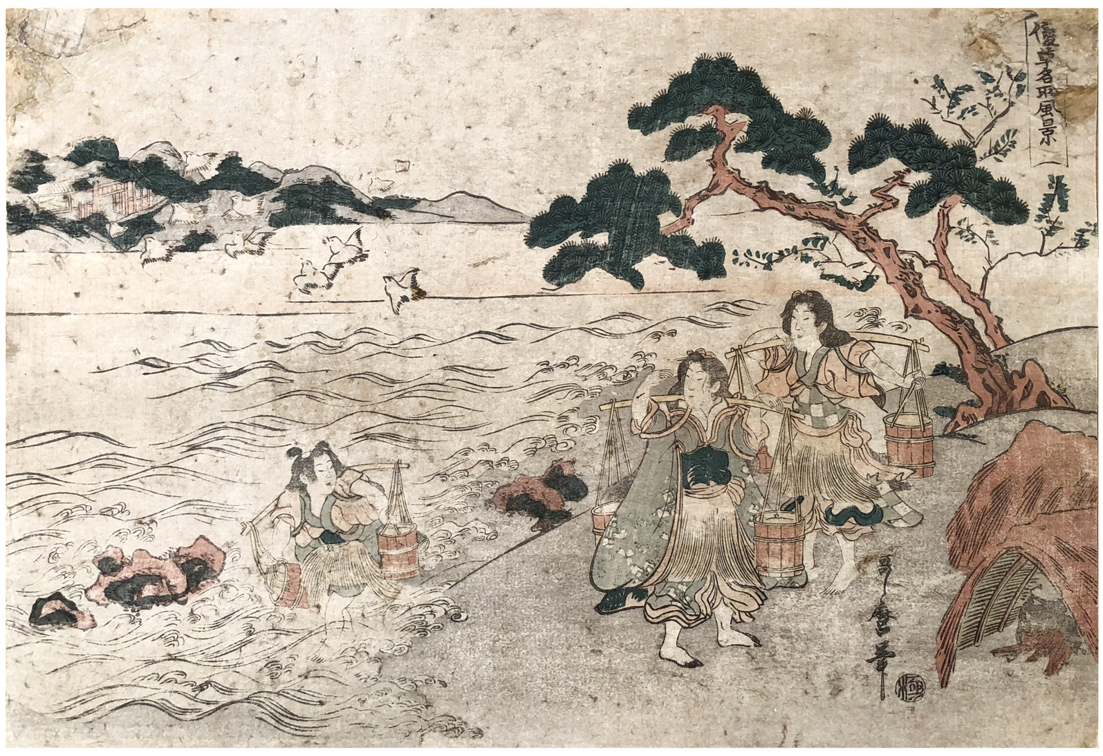 Woodblock Print Title: Girls Fetching Water