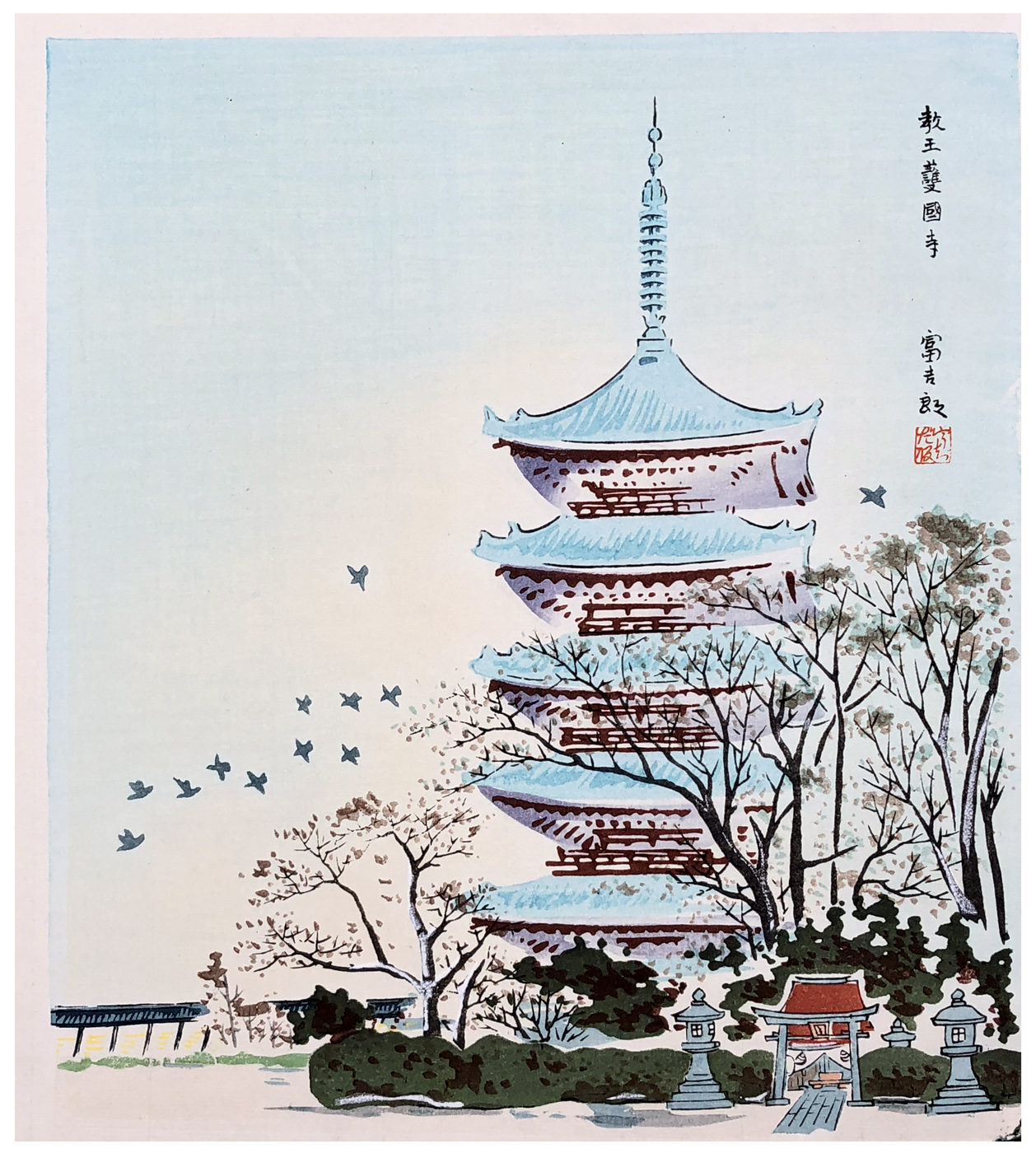 Woodblock Prints Title: Gokokuji Temple, from the series, "Hanga Kyoraku Ju-go Kei" (Fifteen Views of Kyoto)