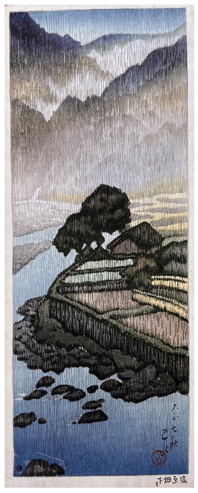 Pictures: Pictures are taken outdoor, in the shade, to reflect true colors, without any enhancements of any kind. The last picture is taken indoor, with a light behind the print, to reveal the exact paper grain, holes if any, or other possible flaws.