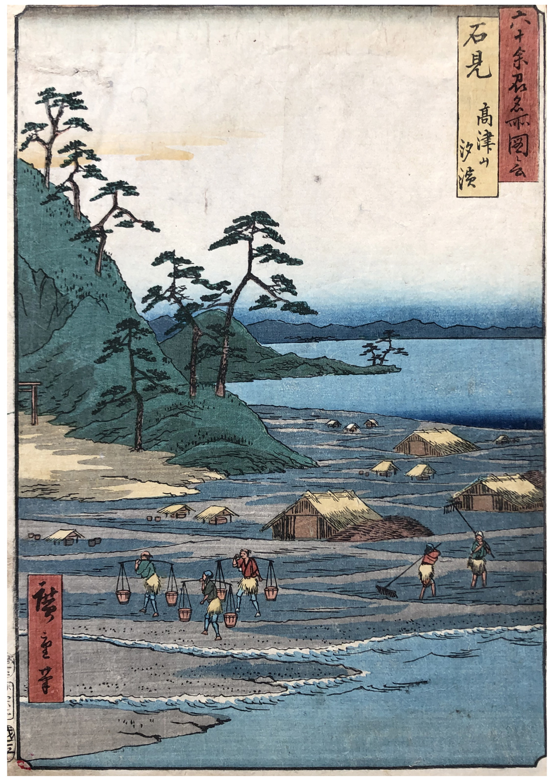 Woodblock Print Title: Iwami Province: Mount Takazuno, Salt Beach (Iwami, Takazunoyama, Shiohama), from the series Famous Places in the Sixty-odd Provinces [of Japan] ([Dai Nihon] Rokujûyoshû meisho zue