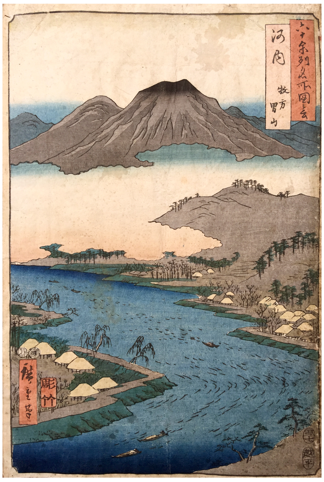 Woodblock Prints Title: Kawachi Province: Mount Otoko in Hirakata (Kawachi, Hirakata, Otokoyama), from the series Famous Places in the Sixty-odd Provinces [of Japan] ([Dai Nihon] Rokujûyoshû meisho zue)