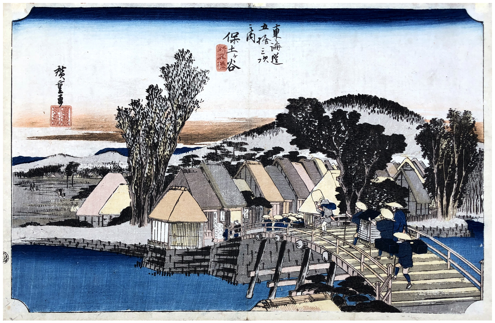 Woodblock Print Title: Hodogaya: Shinmachi Bridge (Hodogaya, Shinmachi-bashi), from the series Fifty-three Stations of the Tôkaidô Road (Tôkaidô gojûsan tsugi no uchi), also known as the First Tôkaidô or Great Tôkaidô