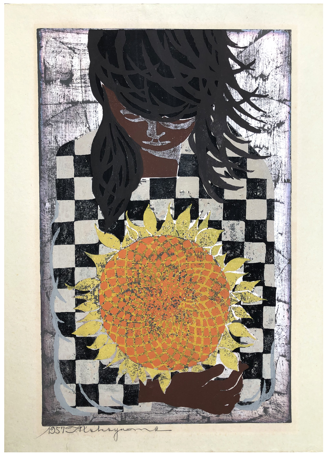 Woodblock Prints Title: Holding a Sunflower