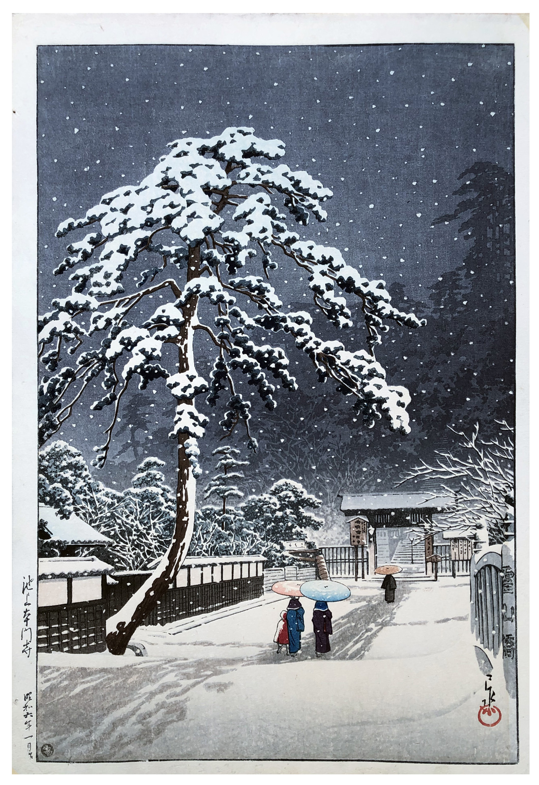 Woodblock Print Title: Honmonji Temple in Snow