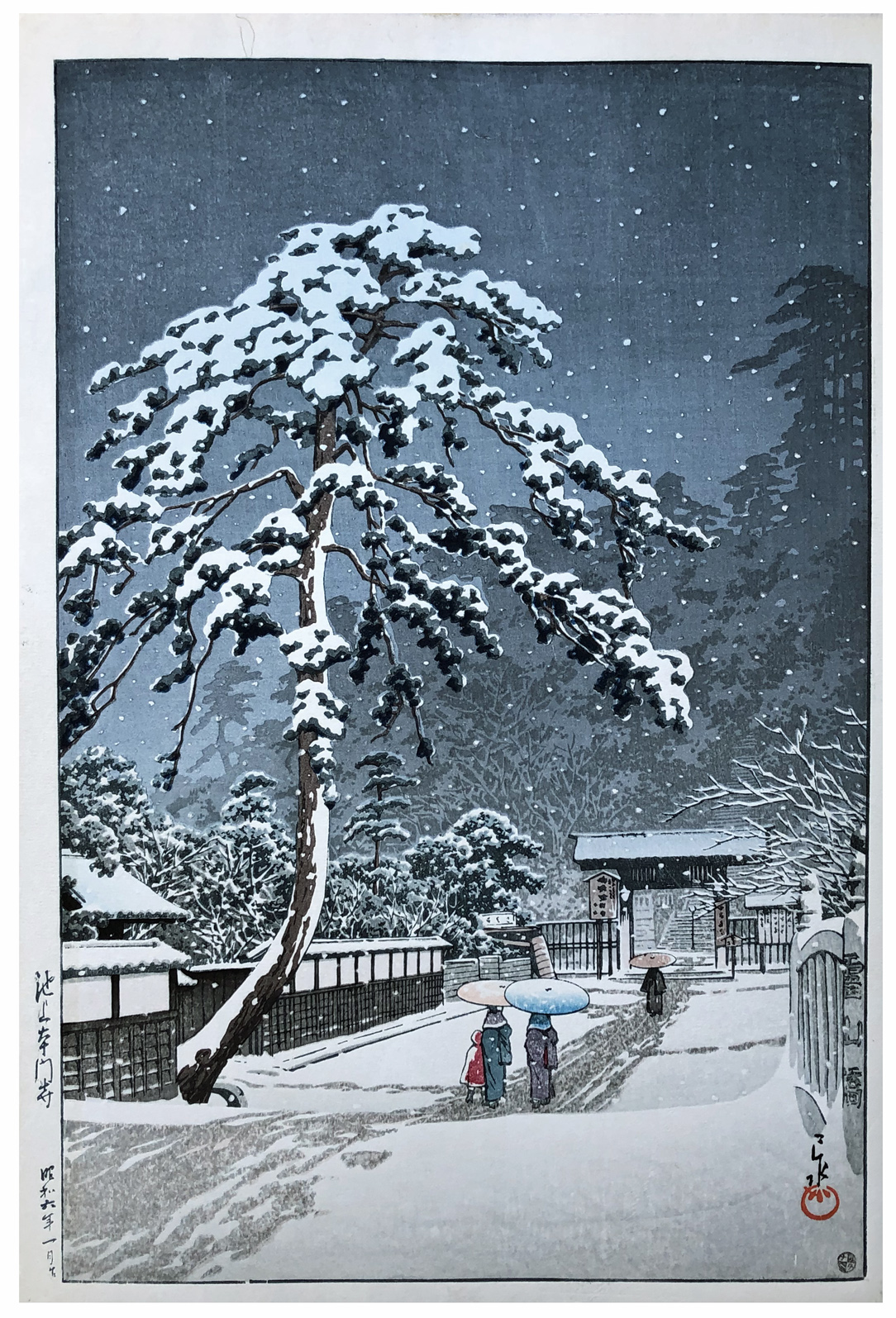 Woodblock Print Title: Honmonji Temple in Snow