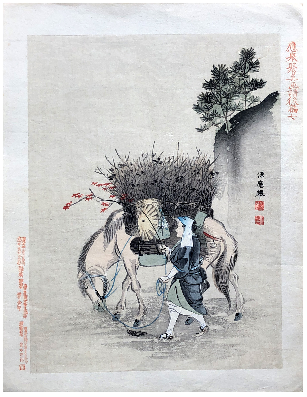 Woodblock Print Title: Horse Carrying Branches