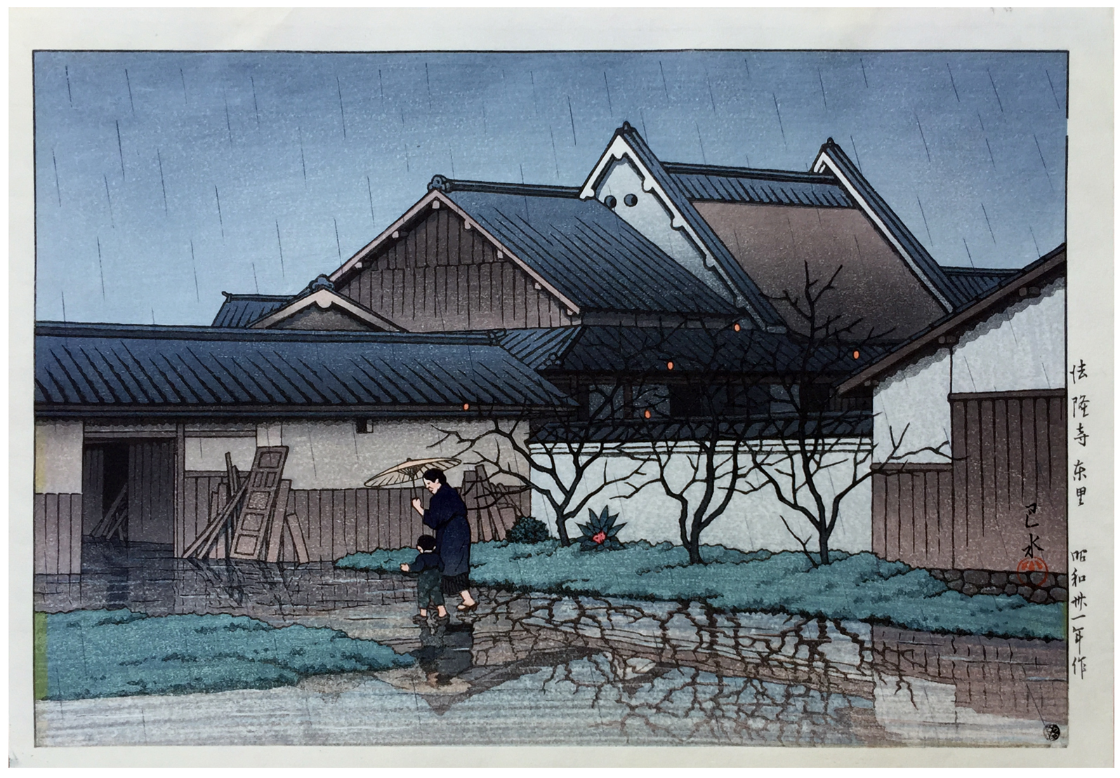 Horyuji Temple in Hamlet by Kawase Hasui 1st Ed.