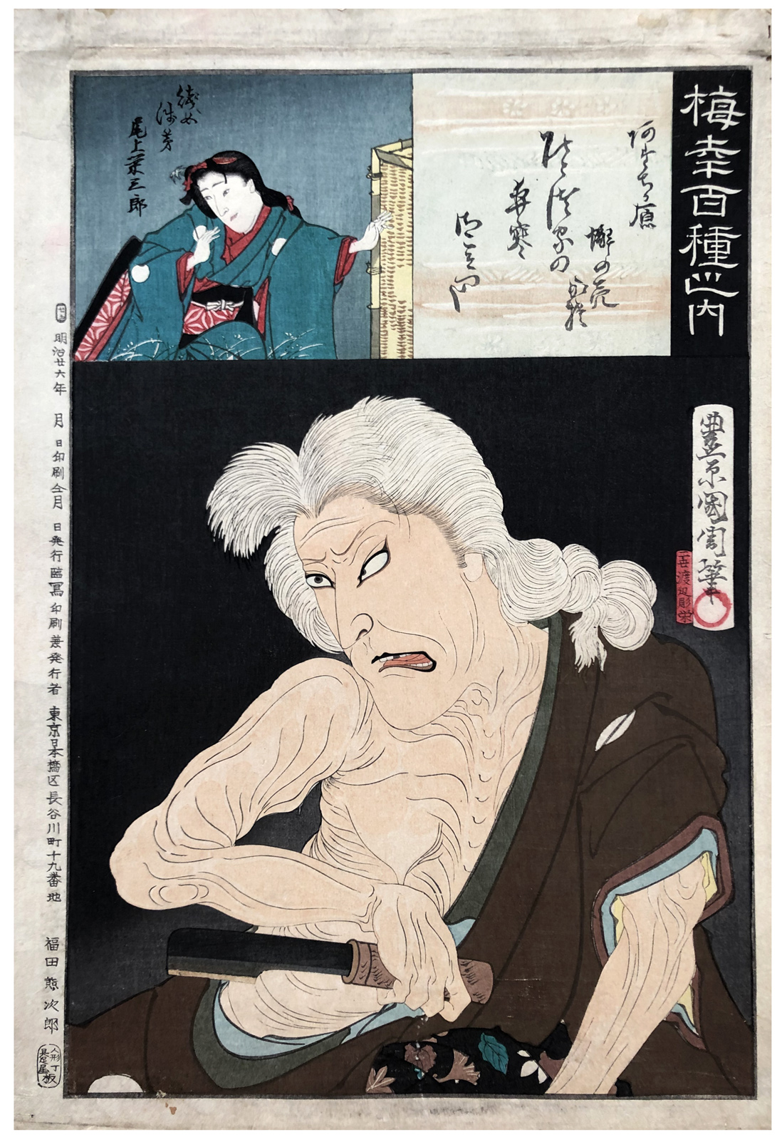 Woodblock Print Title: 100 Roles of Baiko: Witch