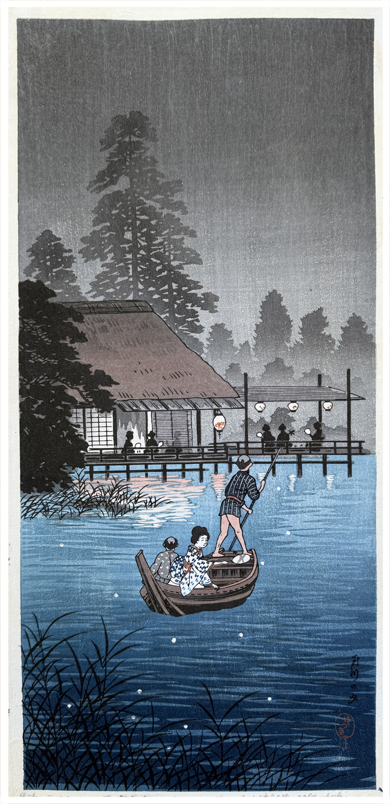 Woodblock Print Title: Hunting Fireflies in Cool Breeze