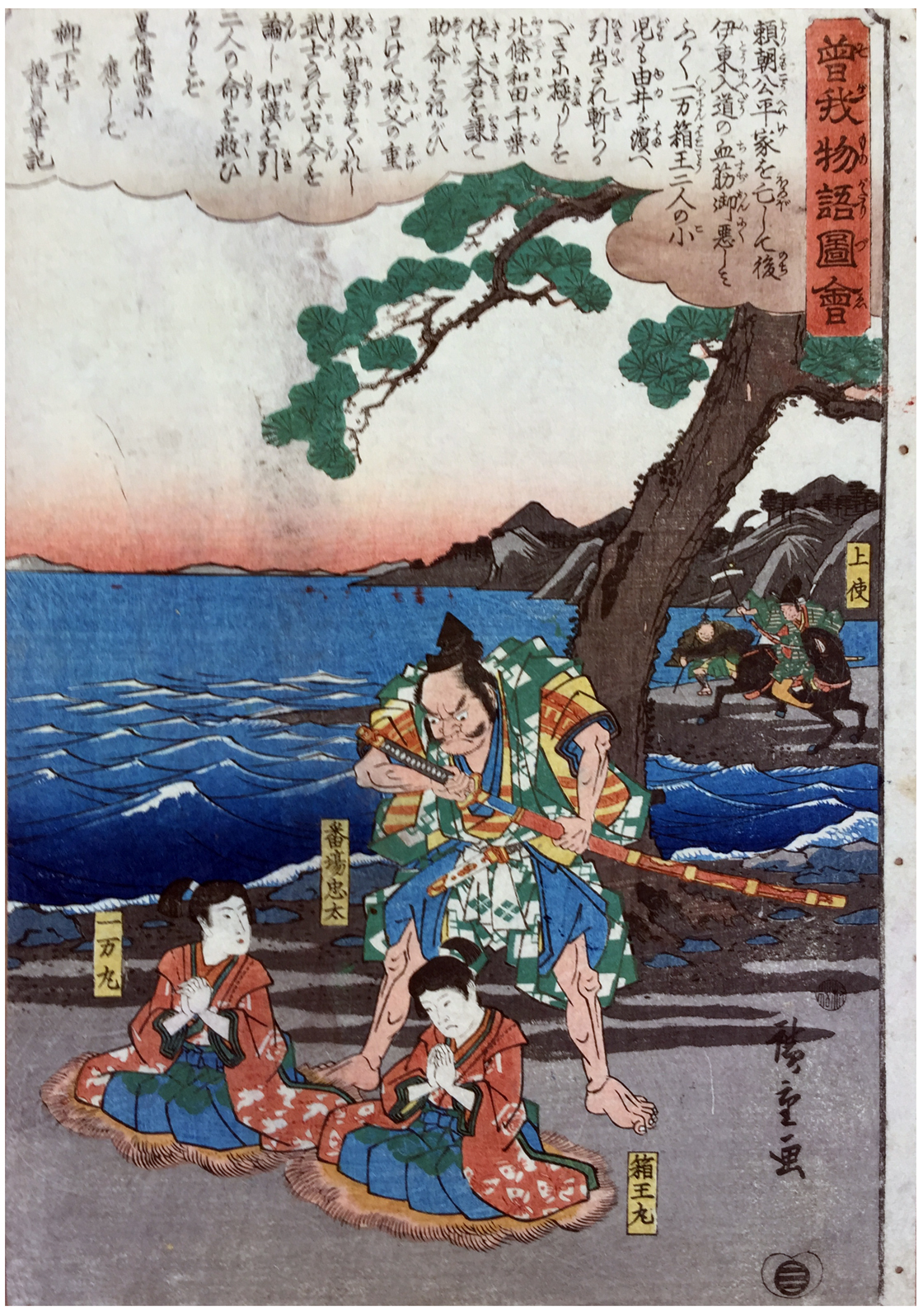 Woodblock Prints Title: Ichiman-maru (Jûrô) and Hakoô-maru (Gorô) About to Be Executed, (But saved) from the series Illustrated Tale of the Soga Brothers (Soga monogatari zue)