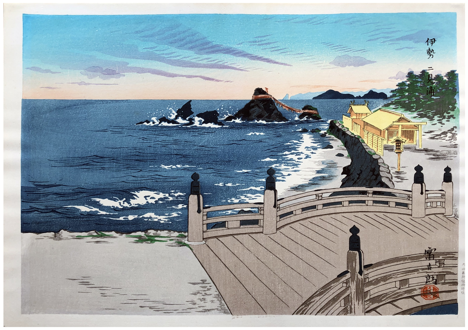 Woodblock Print Title: Ise Futami Bay in Mie Prefecture from the series Famous Historic Places and Holy Places